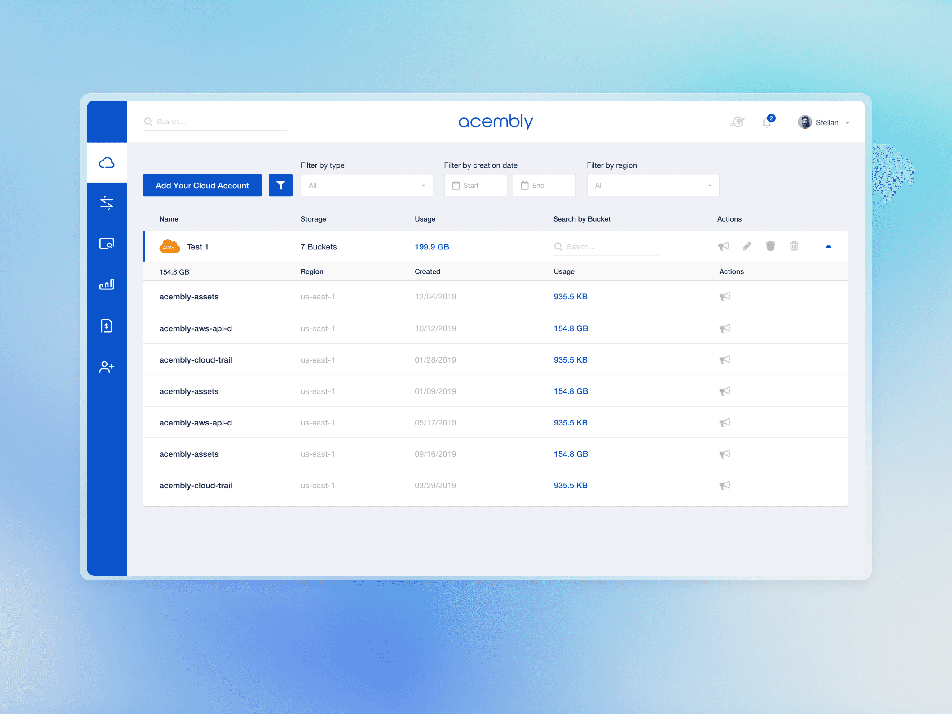 Users needed to move between different storage solutions, manage vast amounts of files, and have a clear overview of their costs. So, the design prioritized a seamless switch between platforms like AWS and Azure, a coherent file management system, and a transparent cost tracker. The prototype of the Acembly dashboard was then introduced to a select group of users. Their hands-on interaction was invaluable.