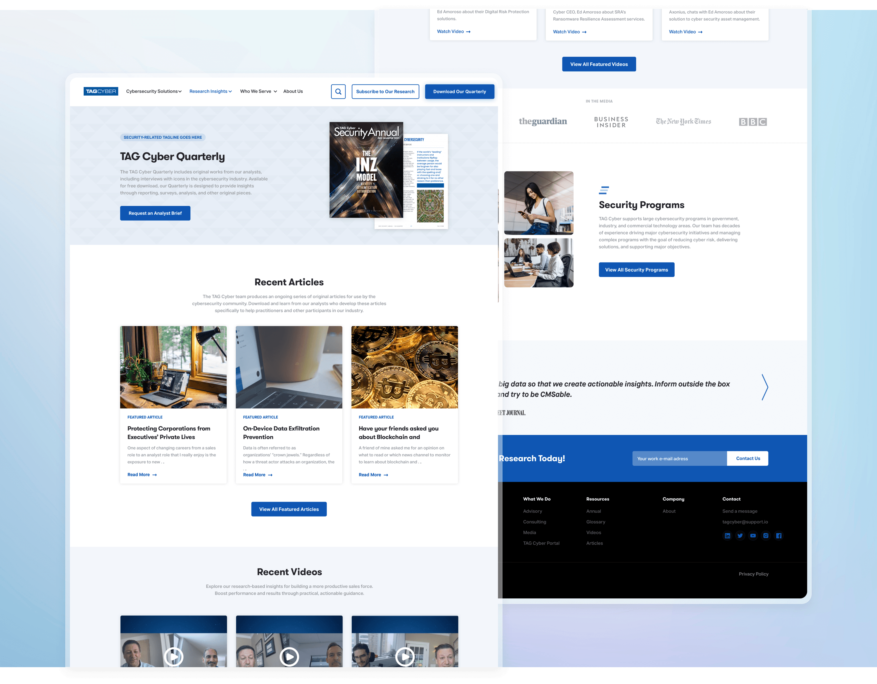 Tag Cyber emerged in the cybersecurity landscape with a fresh and innovative approach. By uniting a team of seasoned professionals, primarily ex-CISOs, they aimed to redefine the standards of professional research and advisory in the domain. My role was to design a content-rich website that would effectively communicate Tag Cyber's expertise and insights to their global clientele.
