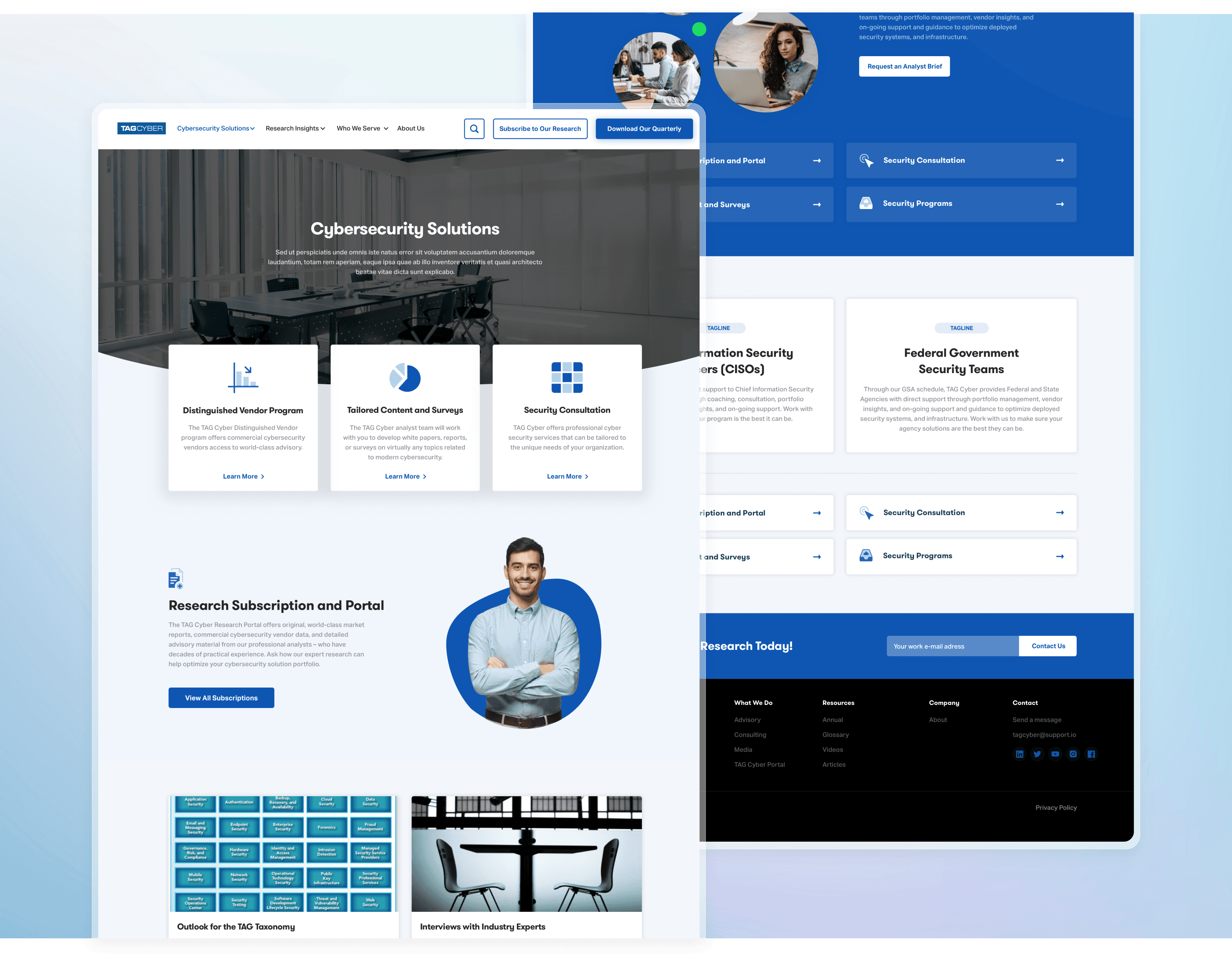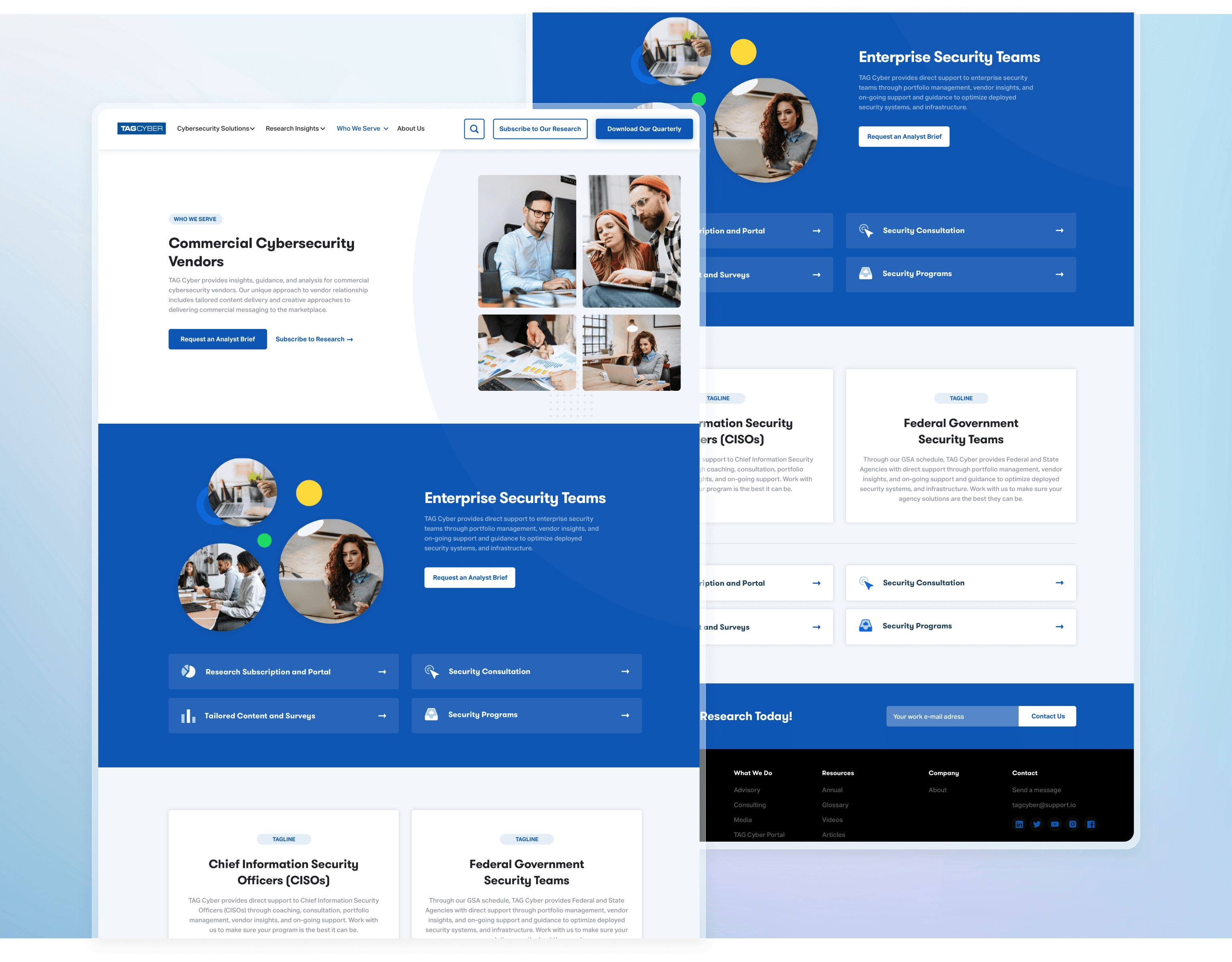 To set the design wheels in motion, it was essential first to understand Tag Cyber's core audience. The target group comprised cybersecurity professionals, enterprise teams, and commercial vendors. They were individuals and groups hungry for expert insights, looking for reliable, in-depth analyses and advisory. Given the content-centric nature of Tag Cyber's offerings, the website needed to be a repository of knowledge, but without overwhelming visitors. The design ethos was to create an organized, streamlined, and easily navigable experience.